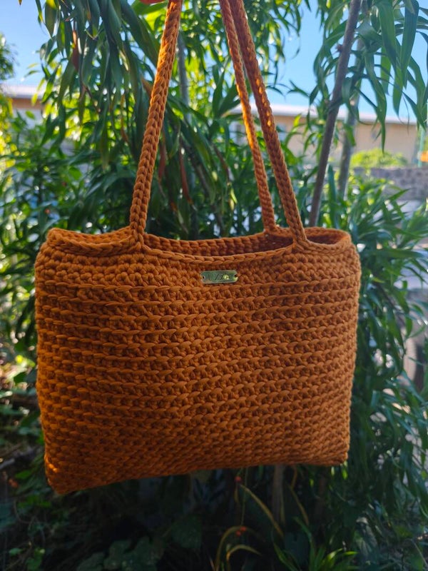 Crocheté avec soin à partir de fil de tee-shirt recyclé, il allie style, durabilité et authenticité.
