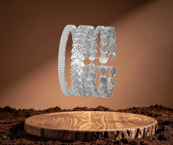 Cette bague se compose de trois anneaux fusionnés, chacun avec un motif différent :