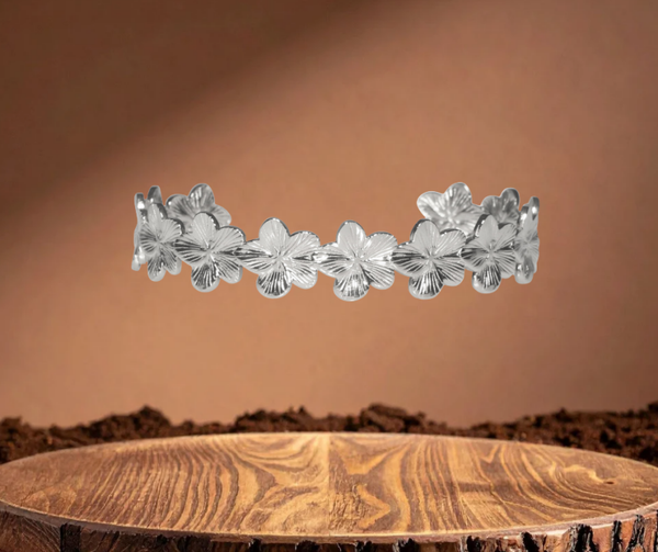 Le Jonc FLORABELLÃ est un bijou d’une finesse exceptionnelle, composé d’une délicate succession de petites fleurs sculptées.