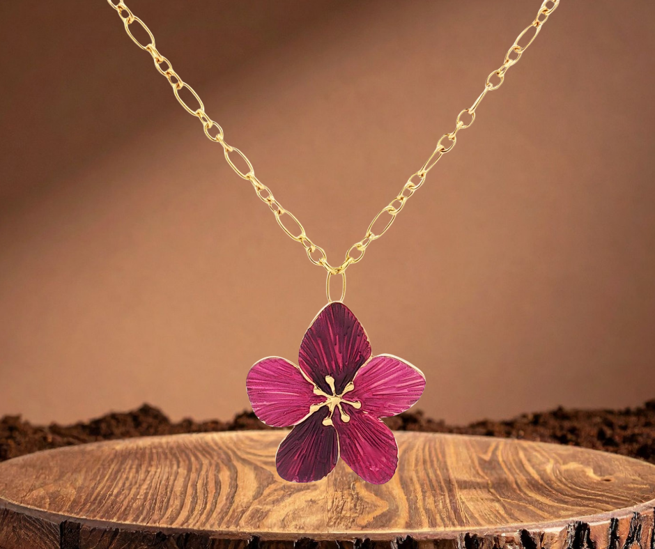 Chaque pièce — bague, bracelet ou collier — est minutieusement travaillée pour rappeler la délicatesse d’un pétale, l’éclat d’un cœur de fleur et la richesse des couleurs de la nature.