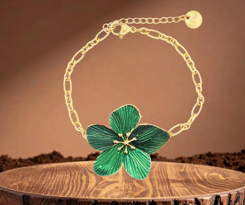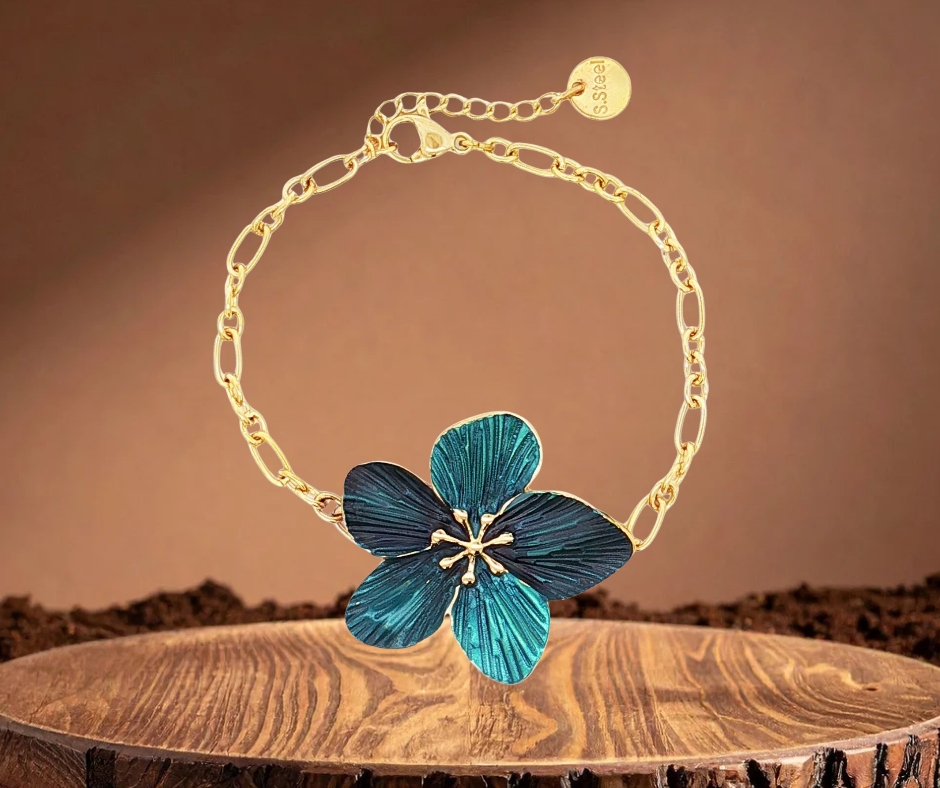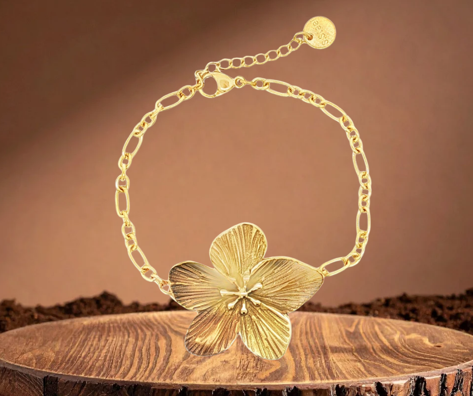 Chaque pièce — bague, bracelet ou collier — est minutieusement travaillée pour rappeler la délicatesse d’un pétale, l’éclat d’un cœur de fleur et la richesse des couleurs de la nature.